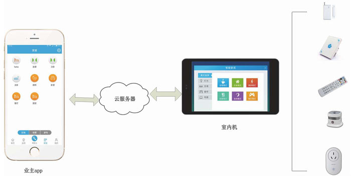 1.業(yè)主app控制開關,點擊開關后,會通過云服務器通知給室內機,最后室內機通過zigbee協(xié)議去控制一些可控開關。