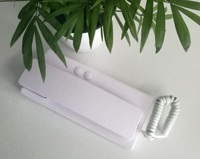 室內(nèi)分機(jī)安裝的是手柄非可視AJL-813款。AJL-813采用ABS塑料材質(zhì),表面做了磨砂處理。手柄式非可視分機(jī),可實(shí)現(xiàn)對講通話、一鍵開鎖、兩線接入、不分極性,非常方便安裝使用。
