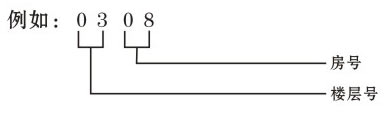 要設(shè)置房號(hào),首先要了解房號(hào)的組成,房號(hào)是由樓層號(hào)及房間號(hào)組成,例如0308,代表第三層樓層的08號(hào)房間的房號(hào),如下圖所示: