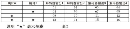 注:該表是樓層號(hào)的設(shè)置,打“★”表示該跳針短路(短路即是插針帽兩針插上)一層1-16戶(hù)房間號(hào)編碼表如下表2所示: