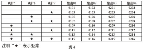 例如短路第4針,那么解碼器的四個(gè)端口的房號(hào)分別是201.202. 203.204;如果短路第5、第4和第7跳針,那么解碼器的四個(gè)端口的房號(hào)分別是305.306. 307. 308;