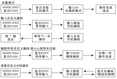 5. 例: 分機(jī)原始房號(hào)為*0101”需編*1188”分機(jī)號(hào):在主機(jī)按“#00002004+0101+1188”依次設(shè)置,設(shè)置完成按“*”鍵退出,設(shè)置完成。