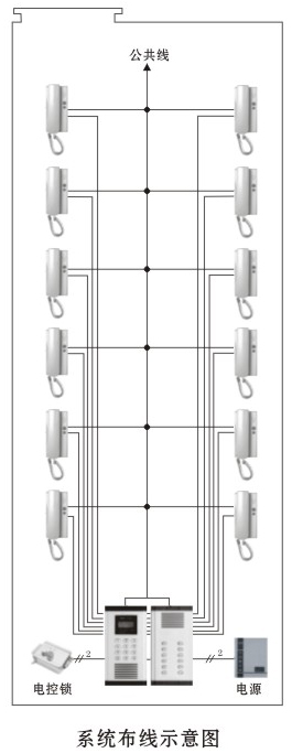 1. 系統(tǒng)采用總線制布線,必須增加解碼器,主干線為三芯線,入戶(hù)線為兩芯線無(wú)極性區(qū)分,布線簡(jiǎn)單、施工方便;