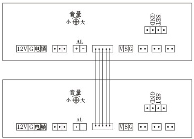 7、 數(shù)據(jù)復(fù)制: 斷電,撥掉主機(jī)按鍵板,用5P對(duì)插線插在按健板插座上,把2個(gè)主機(jī)板連接在起,如下圖所示。在目標(biāo)板主板上供電,供電后在目標(biāo)板上短路一下“GND和SET”跳針,聽(tīng)到繼電器振動(dòng)約10秒后停止數(shù)據(jù)即復(fù)制成功,這時(shí)2個(gè)主機(jī)板的卡數(shù)據(jù)相同,在多門(mén)口要求卡相同可以快速?gòu)?fù)制而不用每臺(tái)主機(jī)都用管理卡增加。