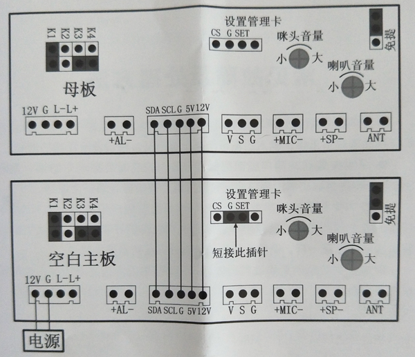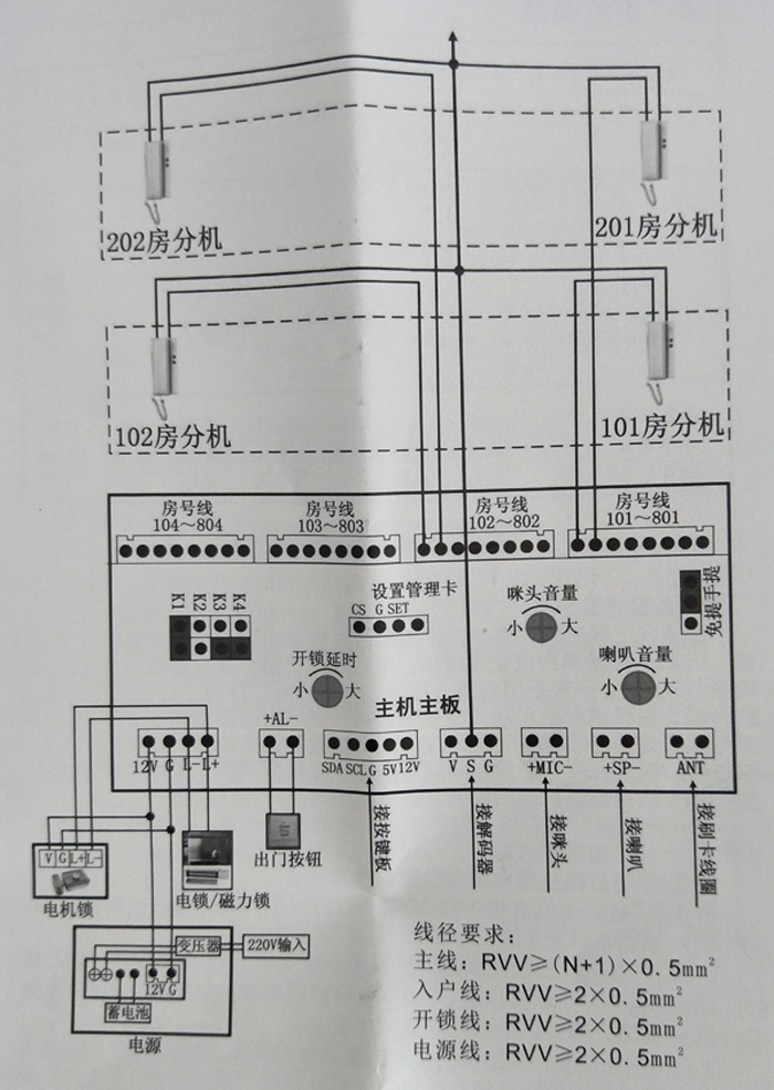 3 )系統(tǒng)接好線即可使用,主機(jī)和分機(jī)無(wú)須編碼;