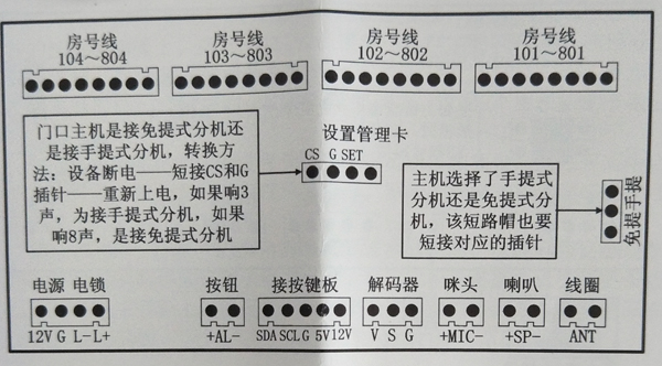 注2:主機(jī)要么全接手提分機(jī),要么全接免提分機(jī),不能部分接手提分機(jī),部分接免提分機(jī)的。