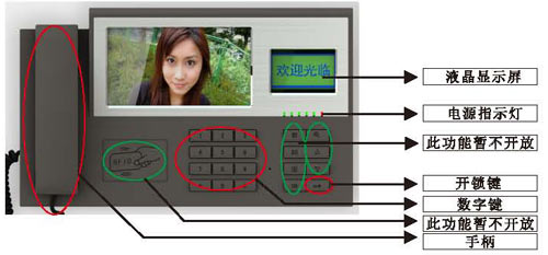 室內(nèi)分機(jī)功能強(qiáng)大、對(duì)講、開(kāi)鎖、監(jiān)視、選曲。