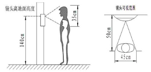 5) 主機(jī)安裝高度不能過高,主機(jī)鏡頭離地面高度為140CM-150CM為最適合。