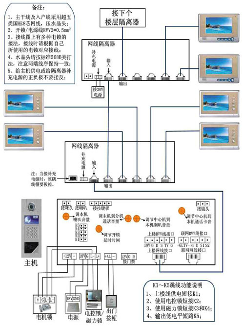 4、分機(jī)不能對講:檢查分機(jī)喇叭和各端口的連線是否正確;