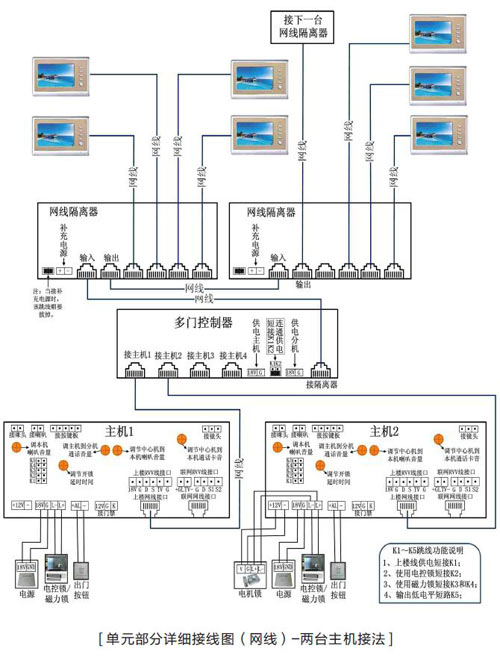 當(dāng)一個(gè)單元中有多能主機(jī)在使用時(shí),必須得設(shè)置主、副機(jī)號,以決定用戶按下監(jiān)視鍵時(shí)監(jiān)控哪個(gè)門口的圖像。因?yàn)楸O(jiān)視時(shí)只能監(jiān)視主機(jī)而不能監(jiān)視副機(jī)。但并不影響來訪者呼叫時(shí)看到的圖像。哪臺主機(jī)呼叫顯示哪個(gè)圖像。